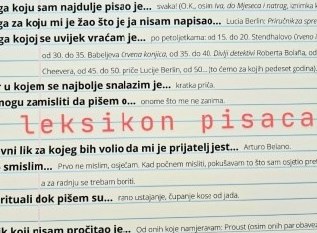 Leksikon pisaca nastao je krajem 2021. godine. Svakog drugog petka, tijekom dvije godine, na Facebook stranici Knjižnice Gajnice objavljivan je po jedan ispunjen leksikon hrvatskih književnika i književnica.Od četrdeset objava, za izložbu je odabrano njih dvadeset.