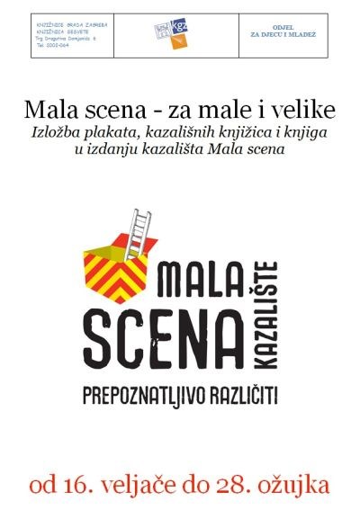 Izložba plakata, kazališnih knjižica i knjiga u izdanju kazališta Mala scena može se razgledati u prostoru Odjela za djecu i mladež Knjižnice Sesvete. U tom razdoblju, uz predočenje potvrde o posudbi u našoj knjižnici, možete u kazalištu Mala scena ostvariti popust od 15% na ulaznice za predstavu po izboru.