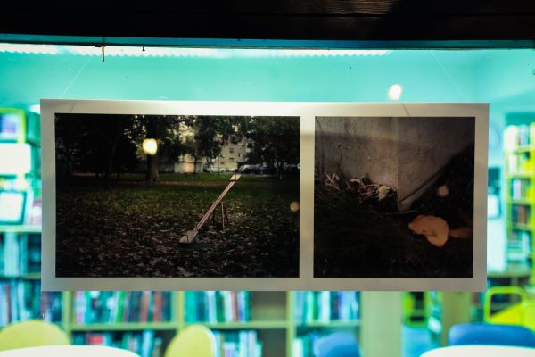 Matija Pekić poziva na igru, ostavlja darove na mjestima na koja upućuje izloženim fotografijama. On kvart prikazuje isključivo kroz javni prostor namijenjen okupljanju i druženju: parkove i igrališta.