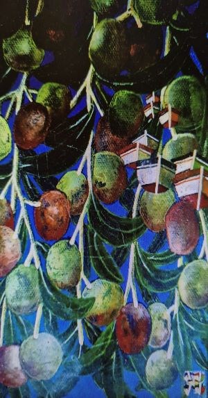 Stablo maslina je kolijevka strasne nostalgije za zavičajem koja kao zapretena jeka zrači opojnošću minulih dana. Satkana krošnja bijelih čipki plamti grimizom lišća, a grane su, svijajući se pod bremenom ploda, nalik srebrenoj aureoli. Vjetar nadimlje krošnju češljajući je pa kao da se uhu