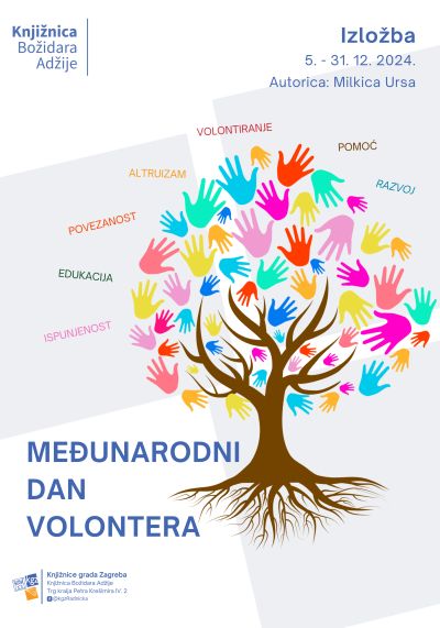 U Studijskoj čitaonici Knjižnice Božidara Adžije postavljena je izložba u sklopu obilježavanja Međunarodnog dana volontera. Riječ volonter u hrvatskom jeziku prevedena je riječju dobrovoljac. Iz francuskog je jezika (volontaire), označava osobu koja besplatno obavlja neku službu iz entuzijazma, radi svoga stručnog usavršavanja ili stjecanja radnog staža.Međunarodni dan volontera obilježava se svake godine 5. prosinca. Utemeljila ga je Opća skupština Ujedinjenih naroda 1985. godine s ciljem da se dobrovoljni rad učini vidljivijim na lokalnoj, nacionalnoj i međunarodnoj razini.