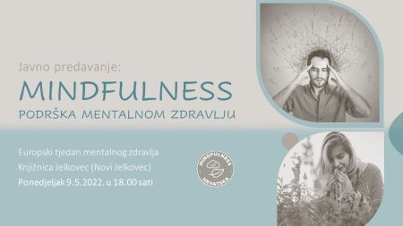 Udruga Mindfulness Hrvatska u sklopu Europskog tjedna svjesnosti o mentalnom zdravlju 2022. organizira besplatno predavanje o mindfulnessu.Život ponekad može biti vrlo izazovan zbog čega se osjećamo preplavljeni okolnostima i snažnim emocijama. U trenucima u kojima su naše mentalno zdravlje i dobrobit ugroženi, važno je podijeliti svoje stanje s obitelji ili prijateljima kojima vjerujemo, a također potražiti stručnu pomoć od kvalificiranih liječnika, terapeuta ili savjetnika.