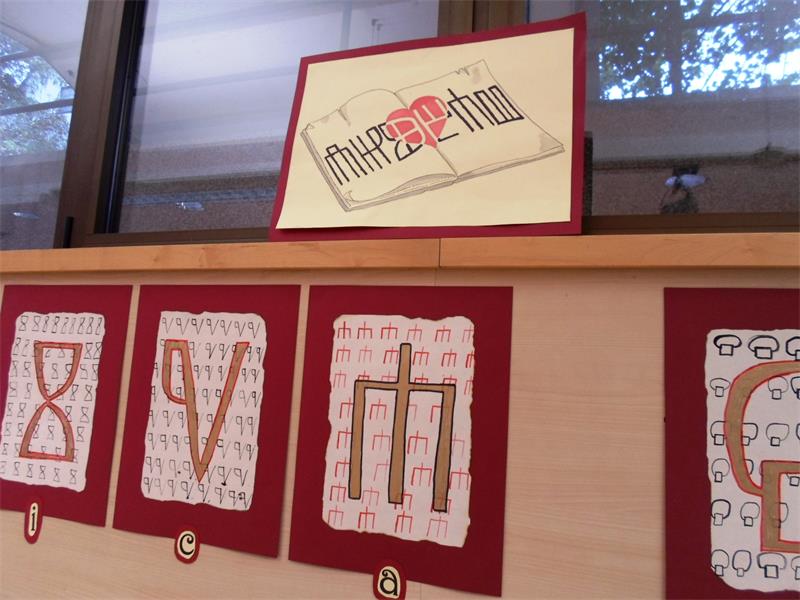 Povodom otvaranja manifestacije Mjesec hrvatske knjige 2014. godine, u suradnji s OŠ Sesvetska Sela, u Knjižnici Sesvete postavili smo izložbu glagoljičkih slova - radove učenika drugih i četvrtih razreda te njihovih učiteljica.Pod brižnim okom učiteljica, učenici su izradili slova glagoljice koja čine ime naše knjižnice. Slova smo dodatno ukrasili i istaknuli s izborom knjiga i slikovnica na temu ljubavi te materijalima izrađenima u suradnji s našim najmlađim članovima na redovnoj tjednoj likovnoj radionici.