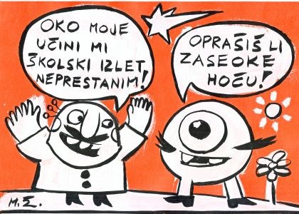 Treću godinu zaredom likovni kritičar Feđa Gavrilović kroz ciklus Mladi likovni umjetnici u Knjižnici Marije Jurić Zagorke nudi nam uvid u domaća recentna umjetnička zbivanja. Geler-i-ja nova je izložba iz ciklusa, 34 duhovita rada Mire Župe u tehnici akrilika i tempere na papiru.Simpatični, zdepasti likovi na slikama Mira Župe uveseljavaju nas svojim porukama, himerično spojenim natpisima na granici apsurda, postavljenima poput teksta u klasičnome stripu. Ipak, te rečenice ne prate nikakvu priču. To su non sequitur replike koje imaju samo ono značenje koje gledatelj (odnosno čitatelj) upisuje u njih. Otuda proizlazi i njihova duhovitost. Oduševljeni čovječuljak koji uzvikuje: „Luda televizijo uzbuđuješ me!“; lik u trku, blaženoga izraza lica koji pomišlja „Jedan čovik manje…“; snagator koji guši malenoga prijatelja uz zajednički uzvik: „Blagujmo stisak vjeronauka!“, mogu se čitati kao duhoviti komentari neke društvene situacije, ali toliko su odvojeni od svakog konteksta i aktualnosti, da smo primorani značenje tih rečenica neprestano preosmišljavati, svjesni da ga zapravo nema izvan njih samih. Tu možemo vidjeti jednu od glavnih metoda Župina stvaralaštva, a to je slaganje rečenica u kojima je zvučnost važnija od smisla. (...) Kao što u jednom iskazu Župa pokušava postići maksimalnu melodioznost, tako i u pojednostavljenom, lapidarnom crtežu on teži da dočara različite ekspresije koje odgovaraju replikama i doprinose duhovitosti cjeline.(...) Budući da smo navikli smisao svijeta tražiti kroz njegovo oblikovanje u jeziku (kao tobože vjernom ekvivalentu pojavnosti koje nas okružuju), ovaj univerzum čovječuljaka sa šest prstiju i ostalih Župinih antropomorfnih protagonista, o kojemu nešto znamo samo iz njihovih kaotičnih izjava, čini nam se potpuno nadrealan. On jeste konstruiran u jeziku ali, za razliku od većine takvih tvorevina, ili sekundarnih svjetova, ne u svakodnevnom i deskriptivnom jeziku, nego osmišljenom prvenstveno prema (kako je definirao lingvist Roman Jakobson) njegovoj poetskoj funkciji, odnosno načinu njegove uporabe u kojemu se isprepliću zvuk, ritam i značenje riječi i rečenica, stvarajući poruku tek zbog nje same., piše Feđa Gavrilović.