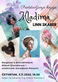 Knjigu Mladima, književni prvijenac norveške glumice Linn Skaber, predstavit će prevoditelj Mišo Grundler, asistent na Katedri za skandinavske jezike i književnost, te urednica u nakladničkoj kući V. B. Z. Koraljka Penavin. Predstavljanje knjige održat će se na Odjelu za odrasle, Trg žrtava fašizma 7.
