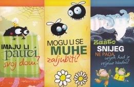 Izložba ilustracija autorske slikovnice Brune Kumana Muha Zunza i Ivane Guljašević za slikovnice Brune Kumana Pauk Praško i Kako je snijeg pao.Mogu li se muhe zaljubiti? Imaju li pauci svoj dom? Zašto snijeg ne pada uvijek kada je hladno? Odgovore na ova pitanja dat će autor tekstova Bruno Kuman u Knjižnici Podsused 26. siječnja u 10 sati.