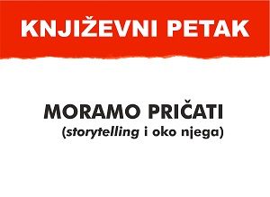 Na tribini će o kazivanju govoriti urednik i voditelj ovog Književnog petka Kruno Lokotar, eminentno uredničko ime, jedan od utemeljitelja domaće storytelling scene, Tanja Mravak, spisateljica i pedagoginja, kraljica Pričigina, glasovitog splitskog festivala pričanja priča, te Antonio Nuić, redatelj, scenarist i također pedagog. Pritom će se Tanja i Antonio kao dva vrhunska storytellera okušati u pričanju priča.