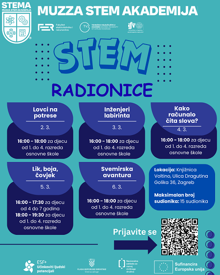 Prijavi se i osiguraj svoje mjesto u ovoj nezaboravnoj STEM pustolovini! Broj sudionika je ograničen na 15 djece po radionici, a prijave su otvorene do popunjenja kapaciteta.
