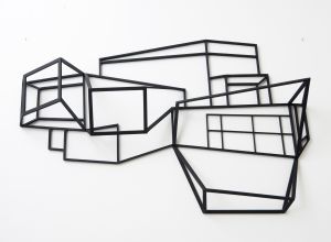 Ovim radom Natalija otvara, rekao bih, treće i četvrto poglavlje svoje 'letvične' faze. Nakon portretiranja stvarnosti, odnosno proizvodnje maketa galerija u kojima je izlagala, napravljenih u mjerilu 1:30, sve redom pravokutnih i posve prepoznatljivih, na red su došli reljefni prikazi nepostojećih pročelja kuća, gdje ona gotovo manifestno predlaže raspored prostorija. I dalje je sve prepoznatljivo i pravokutno, ali ne više stvarno. Baš kao i makete, i reljefi su izgrađeni linijski, poput uprizorenih crteža, što će reći istim tankim crnim letvicama. Od kojih je sada sagrađena i ova instalacija. Koja u jednom dijelu zadržava geometričnost, pa i prepoznatljivost, ali eliminira pravi kut. Da bi u drugom dijelu to postali posve apstraktni komadi, koje, međutim, izlomljena, no i dalje geometrijska forma, kao i građevni materijal, zadržavaju u seriji.