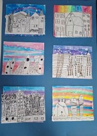 Izložba dječjih likovnih radova u prostoru i i izlogu knjižnice.