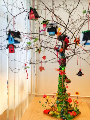 Uz radove izlažemo i fotografije s radionica koje, vjerujemo, dočaravaju barem djelić atmosfere u kojoj smo brusili, lijepili, oslikavali, izrezivali, pleli… ali i pričali, smijali se, veselili se zajedničkim radovima. Iskustva koja smo stekli kroz naša druženja nisu opipljiva poput izloženih radova, ali su jednako stvarna i dragocjena. Proširit ćemo ih u mjesecima koji slijede predavanjima i objediniti u filmu i publikaciji te vas pozivamo da nas pratite na stranicama programa https://olplab.home.blog
