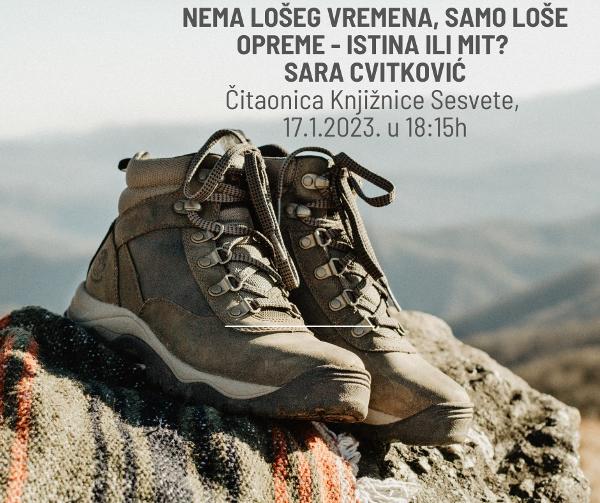 U utorak 17. siječnja u 18:15 sati u prostoru čitaonice Knjižnice Sesvete održat će se predavanje "Nema lošeg vremena, samo loše opreme - istina ili mit?