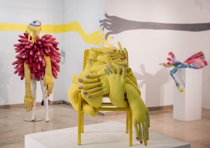 Nikolina Krstičević predstavlja tekstilne skulpture kojima nastoji uloviti pogled promatrača širom otvorenih očiju i ispruženim rukama. Tijelo je tema, interpretaciju istog možemo doživjeti kao vedrinu, ali varljivu:kao što se tekstil ovija oko ruku, ruke se mogu uvijati oko tijela, odmicati se, izvirivati iz tekstila, svojom pojavnošću i gibanjem izazvati emocije. Mogu objašnjavati, naglašavati misli, davati im značenje. Nikolina Krstičević tekstil koristi kao medij za umjetničko izražavanje, ne stvara strukturu za tijelo, već tijelo kao strukturu, od tekstila gradi dijelove tijela, anatomski prepoznatljive, stilizirane kako bi naglasile emociju. Motiv koji je u ovoj tekstilnoj priči istaknut, svakako su ruke, kako sama umjetnica kaže u imenovanju radova, nekad su to Ruke pune straha, ali i potencijalno pune i posve suprotnih asocijacija osjećaja. Jer, upravo su ruke onaj fizički dio čovjeka koji intenzivno prenosi emocije, taktilnošću i gestom. Ruke koje interpretira ova mlada umjetnica, izražavaju svoju bit namjernom prenaglašenošću forme. Intenzivne su i boje, postavljene u snažnim kontrastima posve čiste žute i tamnijih tonova u rasponu od roze do ljubičaste. Izbor je to koji sugerira zaigranost, pa i vedrinu, ali pažljivijim promatranjem i promišljanjem otkriva se i mračnija strana. Taj obrazac susrećemo u bajkama; emotivni put od bezbrižnog do strašnog i opasnog. Aj sidni – poziva umjetnica imenom rada, naslonjača satkanog od mnogo isprepletenih ruku, u toploj žutoj, poput poziva na intenzivan zagrljaj koji se u trenu može transformirati u zarobljenost. Multiplicirani prsti u Rukama punih straha sugeriraju velik potencijal stvaranja, ali u obrnutom naboju emocija jednako velik potencijal razaranja, materijaliziran u tekstilnim skulpturama jasno naglašenih volumena, povezanih linearnim elementima. Nizanjem identičnih elemenata postiže se dinamičnost i svojevrsni skulpturalni ornamentalni obrazac koji intenzivira snagu oblikovanja, snagu emocije, pa i slojeva emocija. Jer, sve je u slojevima koje tek otkrivamo. A vedrina prvog dojma - varljiva je.