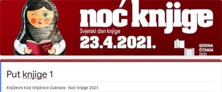 Povodom Noći knjige 2021., online književni kviz Put knjige 1donosi pitanja iz različitih književnih žanrova u nekoliko kategorija.