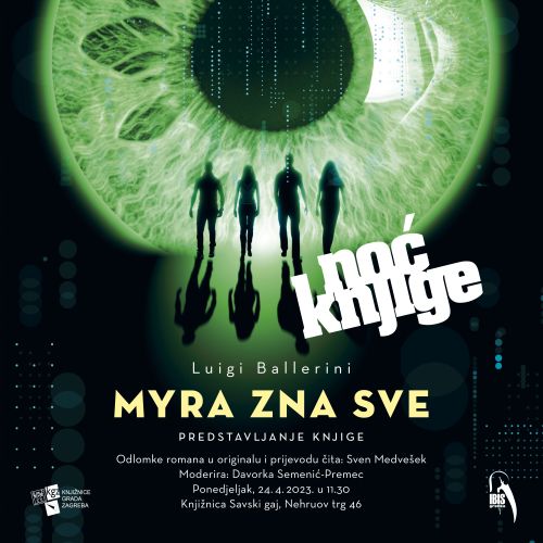 Myra zna sve je napeti distopijski roman čija se radnja odvija u bliskoj budućnosti. Myra je operativni sustav koji brine o svemu, o potrebama i željama svake osobe, od toga koji odjevni predmet odjenuti, s kim se družiti, što jesti…. Myra omogućuje lagodan život, ali na štetu osobne slobode. Roman otvara i pitanja odnosa djece i roditelja, njihovog međusobnog povjerenja te općenito odnosa među ljudima u svijetu umjetne inteligencije i društvenih platformi u kojem postupno nestaje i pisana riječ i književnost, osobito ona otisnuta na papiru. Čak dapače, autor nam sugerira da će nestankom književnosti i prestankom čitanja, nestati i osobno mišljenje. Čini se da je svaka sličnost s Orwellovom 1984. i Bradburryevim Fahrenheitom 451 namjerna.