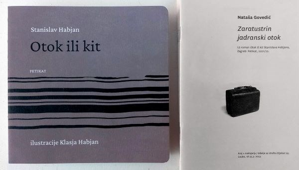 Otok ili kit kao Zaratustrin jadranski otok gesta je ludičke književne svečanosti. Pisac i multimedijski umjetnik Stanislav Habjan i teatrologinja, pjesnikinja i kritičarka Nataša Govedić predstavljaju, zajedno sa svojim gostima, dva uveza svojih tekstova, povezanih istim duhovnim toponimom. Teatar i dvojnik ovdje su umnoženi na toliko načina da se i izgubljena duša može snaći i ponovo pronaći – uz pomoć, naravno, Pijetla, kao simbola umjetnosti i umijeća njenih očisnih. Knjiga za koju autor kaže da je ne zna završiti i esej koji je naziva najinspirativnijom gestom suvremene hrvatske umjetnosti, predstavljaju se zajedno, kao osobit književni trenutak, u galerijskom ambijentu Gradske knjižnice, uz ilustracije Klasje Habjan i sudjelovanje likova iz knjige.