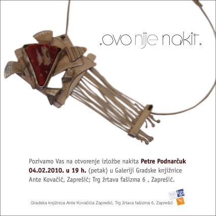 Petra Podnarčuk izrađuje umjetnički nakit od srebra u kombinaciji s mesingom, bakrom, aluminijem i (ne)dragocjenim kamenom. Diplomirala na Grafičkom fakultetu sveučilišta u Zagrebu i radi kao grafički dizajner, a 2005. je upisala tečaj izrade nakita od plemenitih kovina te iz ljubavi i buke nastavlja sa izradom unikata i po narudžbi. Član je Likovne udruge stvaralaca Zaprešić.http://www.ovonijenakit.com/index.html