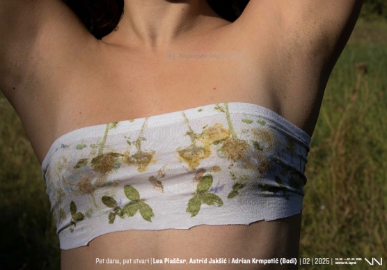 PET DANA, PET STVARIPet dana. Pet(naest) predmeta. Tri umjetnika. Sukus je to performansa „5 dana 5 stvari“ koji je svojevrsni umjetničko-socijalni eksperiment. Troje studenata likovne akademije i prijatelja izoliralo se na pet dana u kući u Moslavačkoj gori, s ciljem stvaranja umjetnosti i poticanja kreativnosti u potpunoj osami i s minimalnim alatima. Prije početka performansa postavljena su jasna pravila: sudionici smiju ponijeti samo pet predmeta koje su sami odabrali, bez zajedničkog dogovora. Kako bi poštovali ograničenja, umjetnici su na sebi nosili više slojeva odjeće, osiguravajući si time čiste komade. Osnovni alati za život su ih zatekli u smještaju - pitka voda, šibice, posteljina i posuđe - dok su sa sobom, uz petnaest predmeta ponijeli i kameru, ključan alat za dokumentiranje performansa. Tijekom boravka u kući nisu imali pristup mobitelima ni internetu - izolacija od izvanjskog svijeta temeljni je aspekt eksperimenta.