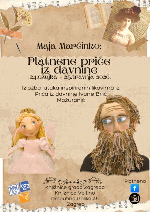 Izložba lutaka inspiriranih likovima Priča iz davnine I.B. Mažuranić.Sve ljubitelje Ivaninih jedinstvenih bajki očekuju nježna Kosjenka, ribar Palunko, zamišljeni Potjeh, zla vila Zatočnica i još petnaestak živopisnih likova izloženih na zanimljivim okvirima od kartona i tkanina.
