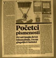 Mjesec hrvatskog jezika spaja Međunarodni dan materinskog jezika (proglasio UNESCO 1999.) i Dane hrvatskog jezika (proglasio Hrvatski sabor 1997.) Ova izložba prikazuje kronološki pregled razvoja jezika i pisma kojima su se Hrvati služili od doseljenja, latinskog pisma i istoimenog jezika, staroslavenskog jezika i glagoljice, hrvatskog i latinice. Prikazuje razvoj pismenosti od inkunabula do prvih tiskanih knjiga. Od prve tiskane knjige prošlo je točno petsto trideset i dvije godine. To je Misal po zakonu rimskog dvora tiskan 22. veljače 1483., najstarija hrvatska tiskana knjiga i najljepša hrvatska inkunabula, objavljena na crkvenoslavenskom jeziku hrvatske redakcije, a pisana glagoljicom.