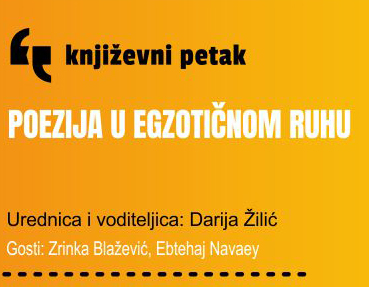 Na tribini će biti riječi o prijevodima poezije s tzv. egzotičnih jezika, latinskog i perzijskog. Naši gosti su prevoditelji, Zrinka Blažević, koja prevodi s latinskog hrvatske latiniste i Ebtehaj Navaey koji prevodi s perzijskog poeziju iranskih klasičnih i modernih pjesnika i pjesnikinja i na perzijski poeziju hrvatskih i bosanskohercegovačkih pjesnika i pjesnikinja.