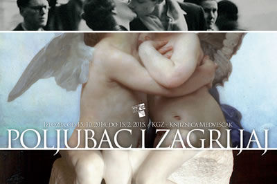 Izložba Poljubac i zagrljaj posvećena je umjetnosti ljubavi, poljupcu (pusi, kušlecu, cjelovu) i zagrljaju kao ključnim motivima u djelima lijepe književnosti, likovne i filmske umjetnosti. Izloženo gradivo predstavlja poljubac kao pečat usana, čin njušenja (Indijanci Cayapa) i trljanja nosovima (Polinežani i Inuiti) u trenucima naklonosti, poštovanja i ljubavi. Trag poljupca vodi do Azijaca koji izbjegavaju ljubljenje u javnosti, do Japana gdje se ne smije ljubiti na ulici, do vjernika koji ljube svete predmete, francuskih kockara koji ljube karte za sreću, Nijemca koji se brane od groma ljubljenjem tla i Danaca koji ljube knjige, ako im padnu na zemlju, kako bi sačuvali njihovu mudrost. Uz poljubac i zagrljaj prikazan je i rukoljub koji su uveli Vikinzi te ljubljenje tla klečanjem, rašireno još u srednjem vijeku.Međunarodni dan ljubljenja obilježava se petoga veljače, a znanost koja proučava ljubljenje naziva se filematologija.