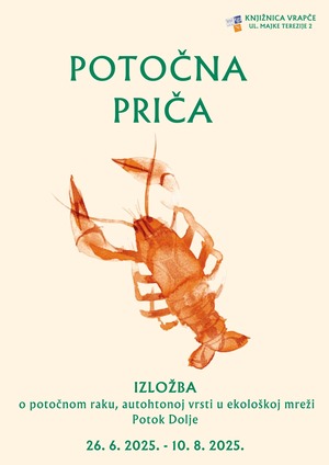 Izložba "Potočna priča" otkriva svijet autohtone vrste potočnog raka (Austropotamobius torrentium), čije prirodno stanište obuhvaća ekološku mrežu Potok Dolje. Potočni rak igra ključnu ulogu u održavanju ravnoteže potočnih ekosustava, ali suočava se s izazovima urbanizacije poput isušivanja vodotoka i širenja invazivnih vrsta. Izložba ističe važnost očuvanja biološke raznolikosti i prirodnih staništa, te poziva na zajedničko djelovanje u zaštiti ekosustava.