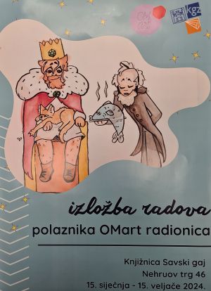 Izložba radova mladih umjetnika u dobi od 11 do 14 godina nastalih na OMart umjetničko-pedagoškim radionicama. Tema radionica - Omiljeni lik omiljenog književnog djela.OMart, kreativne usluge nastale kao rezultat dugogodišnjeg rada, suradnje s obrazovnim institucijama, muzejima, galerijama i entuzijastičnom grupom ljudi i umjetnika koji svom radu pristupaju otvorenog srca! Zanima nas kreativno izražavanje i pedagoško istraživanje s malima i velikima! U OMart programima možete učiti crtati i slikati, modelirati u glini, pripremiti se za prijemni ispit za srednje umjetničke škole i fakultete, obilaziti muzeje, promišljati o kreativnim idejama, napokon čuti sebe i svoje misli, istraživati umjetnost i prirodu u našim kampovima za djecu i mlade.