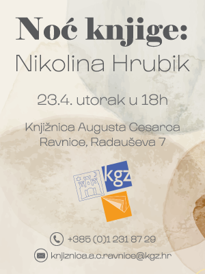 Ovogodišnje Noći knjige traže se odgovori na pitanja kako knjige i čitanje pomažu ljudima u izazovnim vremenima te u kakvoj literaturi pronalaze motivaciju i utjehu. Odgovori se možda kriju u poeziji mlade pjesnikinje koja će svoje zbirke predstaviti u Knjižnici Augusta Cesarca na Ravnicama.