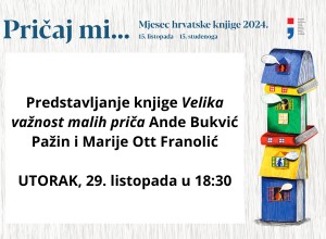 U sklopu Mjeseca hrvatske knjige, u čijem su ovogodišnjem fokusu pripovijedanje i priče, u goste nam dolaze književne teoretičarke Anda Bukvić Pažin i Marija Ott Franolić predstaviti knjigu Velika važnost malih priča: zašto i kako čitati djeci.S njima ćemo razgovarati o važnosti čitanja, o teoriji i praksi, o čitateljskim navikama djece, ali i odraslih te o izazovima digitalnog doba koji utječu na razne i brojne aspekte u našim životima.