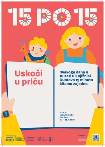 Pridružujemo se nacionalnom izazovu „15 po 15: cijela Hrvatska čita djeci" na poseban način: otvaramo vrata naše knjižnice svaki dan tijekom trajanja izazova i čitamo zajedno.