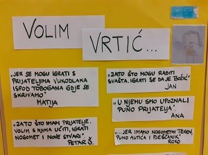 Njegujući temeljne vrijednosti humanizma, tolerancije i podržavajući autonomiju i kreativnost na inicijativu djece u skupini je nastala slikopriča o prijateljstvu, a kasnije i Rječnik poznatih nam riječi, te slikovno/tekstualni Hrvatsko-Ukrajinski-Španjolski rječnik. Rječnik je služio kao podrška razvoju multikultularnosti, boljem međusobnom sporazumijevanju sa djevojčicama iz Ukrajine i Španjolske, te njihovim roditeljima iz drugog govornog područja, odnosno za bolje razumijevanje kulturne i jezične raznolikosti Europe i svijeta.