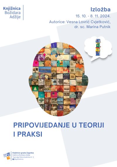 U sklopu obilježavanja nacionalne manifestacije Mjesec hrvatske knjige, u Slobodnom pristupu Knjižnice Božidara Adžije, postavljena je izložba Pripovijedanje u teoriji i praksi. Izložba prezentira suvremene teorije pripovijedanja pokušavajući osvijestiti raznolike moduse uporaba pričanja priča i strategije pripovjednih praksi na prijelazu iz 20. u 21. stoljeće.Bilo jednom, a možda i nije... Iza sedam šuma i sedam gora, sedam rijeka i sedam mora... Negdje i nekad, ali ne znam gdje ni kad... Samo su neki od formulaičnih početaka priča koje su nam pričali roditelji, bake i djedovi, tete u vrtićima ili drugi nama važni i dragi ljudi. Rado se prisjećamo njihovih priča i ponekad ih prepričavamo u raznim društvenim prilikama i situacijama. Zašto su priče i pričanje ljudima toliko važne? Pitanje je to na koje ne postoji jednoznačan odgovor. No, kako navodi Srebrenka Peregrin u knjizi Umijeće pripovijedanja, ljudi su „bića koja neprestano stvaraju priče i zauzvrat pričama“ (Peregrin, 2024:8) stvaraju sebe. Praiskonska povezanost čovjeka i njegovih priča nije slučajna, vodi nas u daleku povijest, na početke razvoja međuljudske komunikacije u prvobitnoj zajednici na temelju ljudskog govora. Čovjek je jedino živo biće koje posjeduje sposobnost govora koji ga razlikuje od ostalih živih organizama na Zemlji. Ne postoje točni podaci o vremenu kad je čovjek progovorio, ali pretpostavlja se da je to moglo biti negdje s pojavom homo sapiensa, prije otprilike 300 000 - 200 000 godina na različitim nalazištima Europe i Afrike (Haviland, 2004:77).