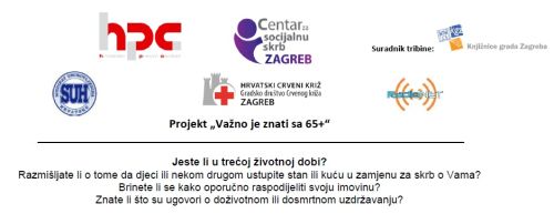Projekt „Važno je znati sa 65+“ usmjeren je zaštiti starijih osoba kroz informiranje i pružanje savjetodavne pravne pomoći. Projektom se žele spriječiti zlouporabe ugovora o dosmrtnom/doživotnom uzdržavanju starijih osoba, te zlouporabe povezane s drugim oblicima raspolaganja imovinom, kao što su nasljeđivanje i darovanje. Provode ga Hrvatski pravni centar (HPC) i Centar za socijalnu skrb Zagreb u suradnji sa Sindikatom umirovljenika Hrvatske (SUH), Gradskim društvom Crvenog križa Zagreb i udrugom Radio mreža.