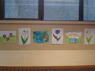 Izloženi radovi učenika 2.c razreda OŠ Luka (učiteljica Ana Šubić), u tehnici tempere, kolaža i flomastera, prikazuju proljetnice i proljetne motive.