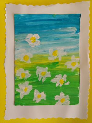 Djeca u odgojno - obrazovnoj skupini Zebrice, također uzrasta 3 i 4 godine, inspiraciju su našli na livadi punoj tratinčica. Koristili su temperu, a likovne aktivnosti s njima su radile Irena Vidović i Marijana Stanković.