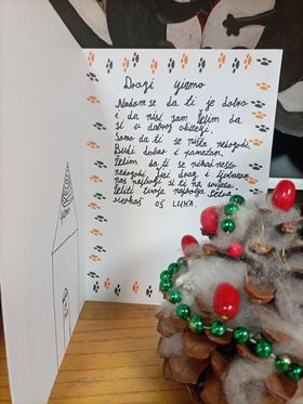 Nakon edukativne radionice u suradnji sa Skloništem za napuštene pse Dumovec održane u listopadu ove godine, nastala su pisma koja su djeca uputila psima koji su im posebno "zapeli za oko i srce", a nalaze se trenutno u Skloništu. Lijepe, tople riječi podrške i ohrabrenja te maštoviti crteži mogu se pročitati i razgledati na izložbi u prostoru naše knjižnice.Autori pisama su učenici 3. a razreda OŠ Luka (učiteljica Jasminka Pizzitola).