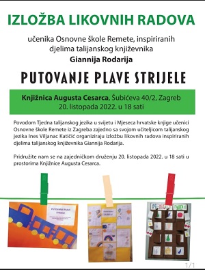 Povodom rođendana talijanskog pisca za djecu Giannija Rodarija, učenici OŠ Remete i profesorica talijanskog jezika Ines Viljanac Katičić, izradili su likovne radove inspirirane likovima iz njegovih najpoznatijih djela: "Telefonske priče", "Čipolino", "Putovanje Plave strijele", Gelsomino u zemlji lažljivaca".Likovna radionica na temu Rodarijevih djela održat će se u četvrtak, 20. listopada u 18 sati na Odjelu za djecu i mlade.