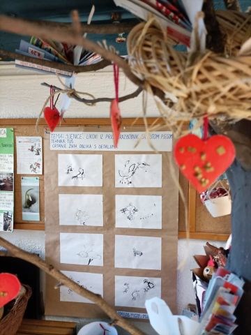 "Razbojnik sa žutom pjegom" Grigora Viteza poučna je priča koja govori o tome što se može dogoditi kada ne slušamo savjete starijih i nesmotreno srljamo u opasnost, a odvija se u ptičjem svijetu. Taj su svijet tematizirala djeca iz odgojne skupine Balončići (DV Leptir) putem maštovitih radova u različitim tehnikama: tušem su detaljno crtala ptice sjenice u pokretu - likove iz priče, od odloženog materijala napravila su papirnate ptice, a tu je i zidna (rolo) slikovnica nastala prema originalnoj priči, ali na dječji način. Cijeli se taj ptičji svijet može razgledati u prostoru naše knjižnice, a odgojiteljice koje su nam izložbu ustupile su Brankica Grgac i Lucija Nevistić.