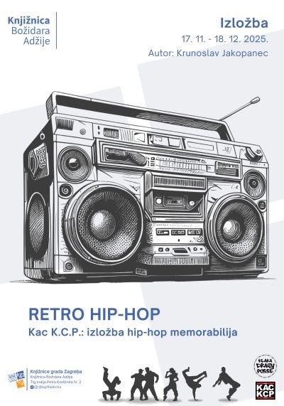U Slobodnom pristupu Knjižnice Božidara Adžije postavljena je izložba RETRO HIP-HOP: Kac K.C.P.: izložba hip-hop memorabilija. Izložba donosi presjek bogate povijesti i stvaralaštva hip-hop scene. Posjetitelji mogu razgledati knjige, časopise o hip-hop kulturi te raznolike memorabilije koje svjedoče o razvoju i utjecaju ovog glazbenog žanra. Autor izložbe je Krunoslav Jakopanec.Krunoslav Jakopanec, poznatiji pod nadimkom Kac, rođen je 1975. godine u Zagrebu. Odrastao u Dubravi na Klaki, a 1999. godine preselio na Remizu na Trešnjevci. U svijet hip-hop kulture ušao je u ljeto 1990. godine kada je, na bivšoj Televiziji Zagreb, gledao spot pjesme Walk this way legendarne rap grupe Run-DMC. Nakon toga započeo je kupovati i skupljati prve rap ploče i kazete, u prodavaonici Jugoton ili Suzy, a ponajviše kod prodavača u Bogovićevoj ulici.