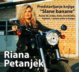 Kulturni četvrtak u Sesvetama i HPD Lipa Sesvete na tribini Planinarski utorak organiziraju putopisno predavanje, projekciju fotografija i predstavljanje knjige Riane Petanjek: Slane banane, u Čitaonici Knjižnice Sesvete, u utorak 14. ožujka 2017. u 18:30 sati.Autorica, novinarka i putopiskinja Riana Petanjek već godinama vodi svoj putopisni blog te piše putopisne članke. Također, održava i putopisna predavanja u Hrvatskoj i okolici. Putopis Slane banane objedinjuje najuzbudljivije dogodovštine s Rianinog dvogodišnjeg putovanja svijetom, primjerice, saznajemo kako ju je ugrizao majmun na tajlandskom otoku, kako joj je bilo voziti samoj Route 66 na Harley Davidsonu, kako je spavati u pustinji s devama, kakav je život u Indiji, što možete očekivati krenete li na mjesec dana u Kambodžu, što je zajedničko Dubaiju i Vegasu...