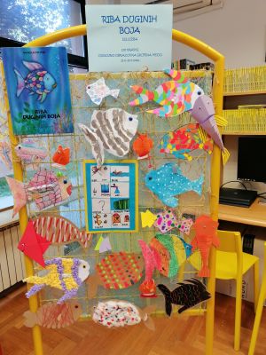 Slikovnica Riba duginih boja, švicarskog književnika i ilustratora Marcusa Pfistera, inspirirala je djecu i odgajatelje odgojno-obrazovne skupine Medo DV Vrapče na dizajniranje ribica, pri čemu su koristili brojne likovne tehnike i njihove kombinacije. Svi izloženi radovi rađeni su grupno kako bi se potaknulo zajedništvo djece i njihova međusobna suradnja.Stihove o ribi duginih boja napisala je sedmogodišnja Tea N., a zapisala ih je NTC metodom. Prezentaciju napisanih i izloženih stihova o malenoj ribi djeca odgojno-obrazovne skupine Medo održat će u našoj knjižnici u petak, 24. lipnja, u 17 sati.
