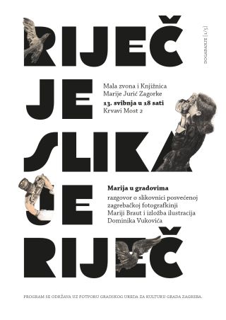Održat će se razgovor o slikovnici „Marija u gradovima“ (Mala zvona, 2021.) autorice Sanje Lovrenčić u sklopu projekta „Riječ je slika je riječ“, popraćeno izložbom ilustracija Dominika Vukovića.