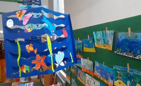 Stiglo je ljeto na dječji odjel knjižnice Vrapče! Zaronite u morske dubine i pogledajte tko se sve tu krije.Radove su izradila djeca 2.c i 2.d razreda OŠ Augusta Šenoe (Trešnjevka) u kombiniranoj tehnici.