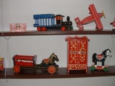 Pavica Mlinarić i Mladen Mikuš, čije su igračke izložene u knjižnici danas su rijetki nastavljači tradicije izrade drvenih igračaka u Hrvatskoj. Pri izradi poštuju pravila koja određuju izgled hrvatskih igračaka kao zaštićenog proizvoda kulturne baštine koji je kao takav 2009. godine uvršten na UNESCO-ovu Reprezentativnu listu nematerijalne kulturne baštine čovječanstva. Razmišljaju o obnavljanju nekih igračaka koje se više ne izrađuju. Svojim načinom oslikavanja i izborom modela postali su prepoznatljivi i u stručnim ustanovama s kojima surađuju.Izložba je ostvarena i suradnjom s Etnografskim muzejom u Zagrebu, fotografijama majstorske radionice drvenih igračaka iz sela Vidovec. Na taj su način predstavljene dvije „škole“ hrvatskih drvenih igračaka; obitelj Mikuš koja nastavlja tradiciju i one iz Vidovca koja je prestala raditi.