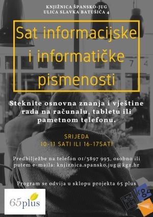 Pozivamo vas na radionice informacijske i informatičke pismenosti za osobe treće životne dobi.Radionice će se održavati srijedom od 10 do 11 i od 16 do 17 sati.
