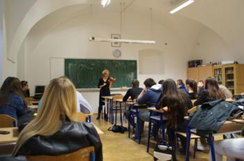 The American Studies group and their English teacher Ms. Snježana Liović at Gornjogradska gimanzija in Zagreb hosted the American Corner of the Bogdan Ogrizović City Library and Ms. Elizabeth Blumenthal, Assistant Public Affairs Officer at the U.S. Embassy Zagreb, on October 30, 2013. As this year's Croatian Book Month is dedicated to reading aloud, Ms. Blumenthal was reading aloud from J. D. Salinger's The Catcher in the Rye.I'm quite illiterate, but I read a lot. (Holden Caufield, the teenage protagonist in Salinger's The Catcher in the Rye)