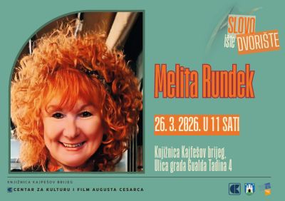 Knjižnica Kajfešov brijeg te Centar za kulturu i film August Cesarec u sklopu projekta Slovo ište dvorište ugostit će spisateljicu Melitu Rundek.Spisateljica Melita Rundek napisala je četrdeset i dva naslova, od kojih je čak trideset i šest za djecu i mlade, a četiri naslova su lektira za osnovnu školu. Dobitnica je nagrade Ivana Brlić Mažuranić za knjigu Psima ulaz zabranjen (1999.), Mato Lovrak za Izgubljena u ormaru (2014.) te nagrade Anto Gardaš za knjigu Letači srebrnih krila (2017.).