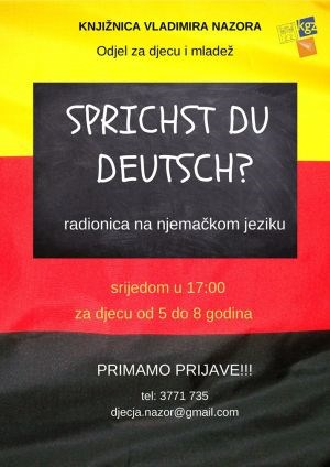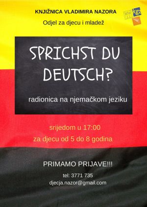 Draga djeco, pridružite nam se svake srijede na zabavnoj radionici na njemačkom jeziku.Program radionice na njemačkom jeziku namijenjen je za svu djecu od dobi od 5-8 godina koja će se na zabavan i kreativan način upoznati s osnovama njemačkog jezika.