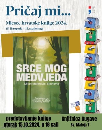 Jedan poseban šumski čovjek Marko Turk, kao glavni lik romana Srce mog medvjeda povest će nas predivnim krajolicima Gorskog kotara u ne tako davnu prošlost. Pripovijedat će nam o ljepoti prirode, običajima ljudi i svojim razmišljanjima. Milan Majerović-Stilinović kroz lik Marka dočarao nam je isprepletensot čovjeka i prirode. Knjige Milana Majerovića-Stilinovića možete posuditi u Knjižnicama grada Zagreba: https://bit.ly/4dH1hVE